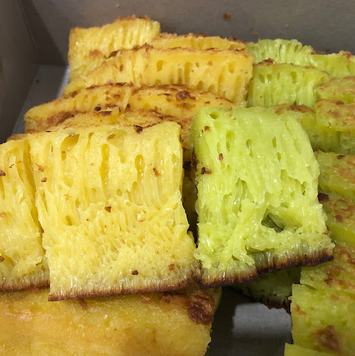 Bika ambon tuh terkenal dengan makanan yang warna kuning emasnya, untuk rasa original. Warna emasnya ngejreng, sehingga menggugah rasa. Namun Bika Ambon Palem ini berbeda. Warnanya gak terlalu ngejreng sih, dan tidak terlalu berminyak pula. Tapi teksturnya memang lembut dan kenyal-kenyal gitu. Empuk, gak ada komplain lah.